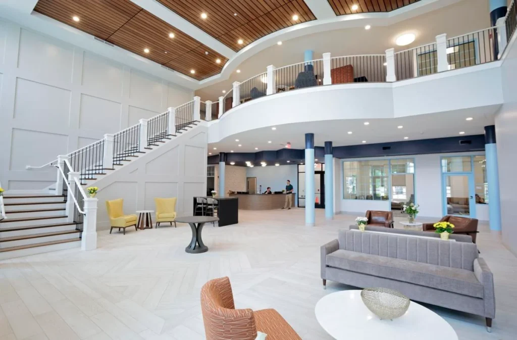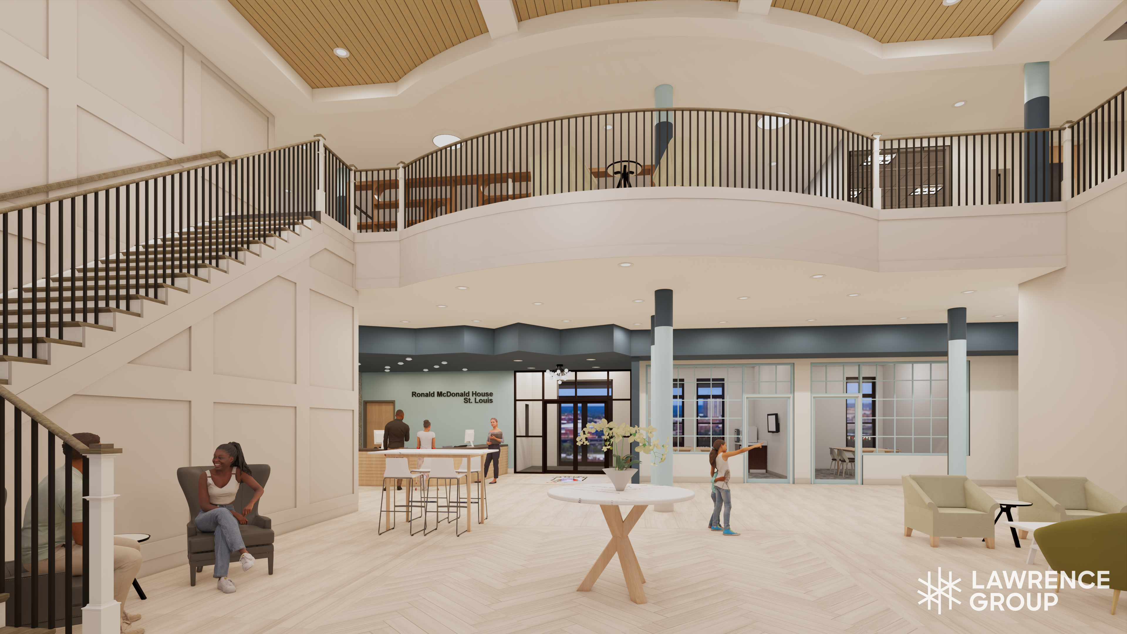 The facility includes a full service commercial kitchen and dining area, an indoor play area, serenity spaces, family lounges on every floor, a 3rd floor exterior terrace, a large multipurpose meeting space, and to serve as the corporate headquarters for the administrative staff of the organization.